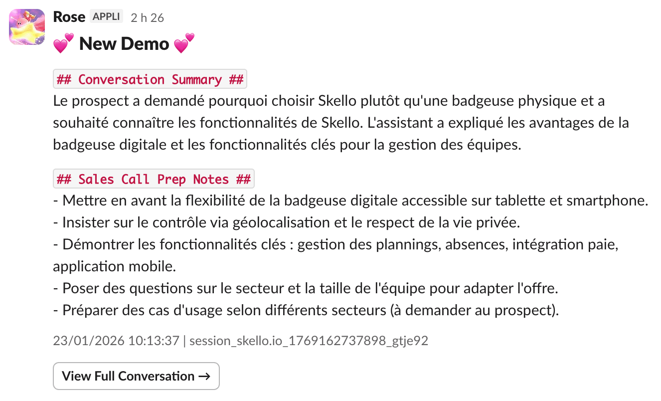 Rose deployed a multi-agent system on Skello's website, starting with the Website Agent as the engagement foundation.